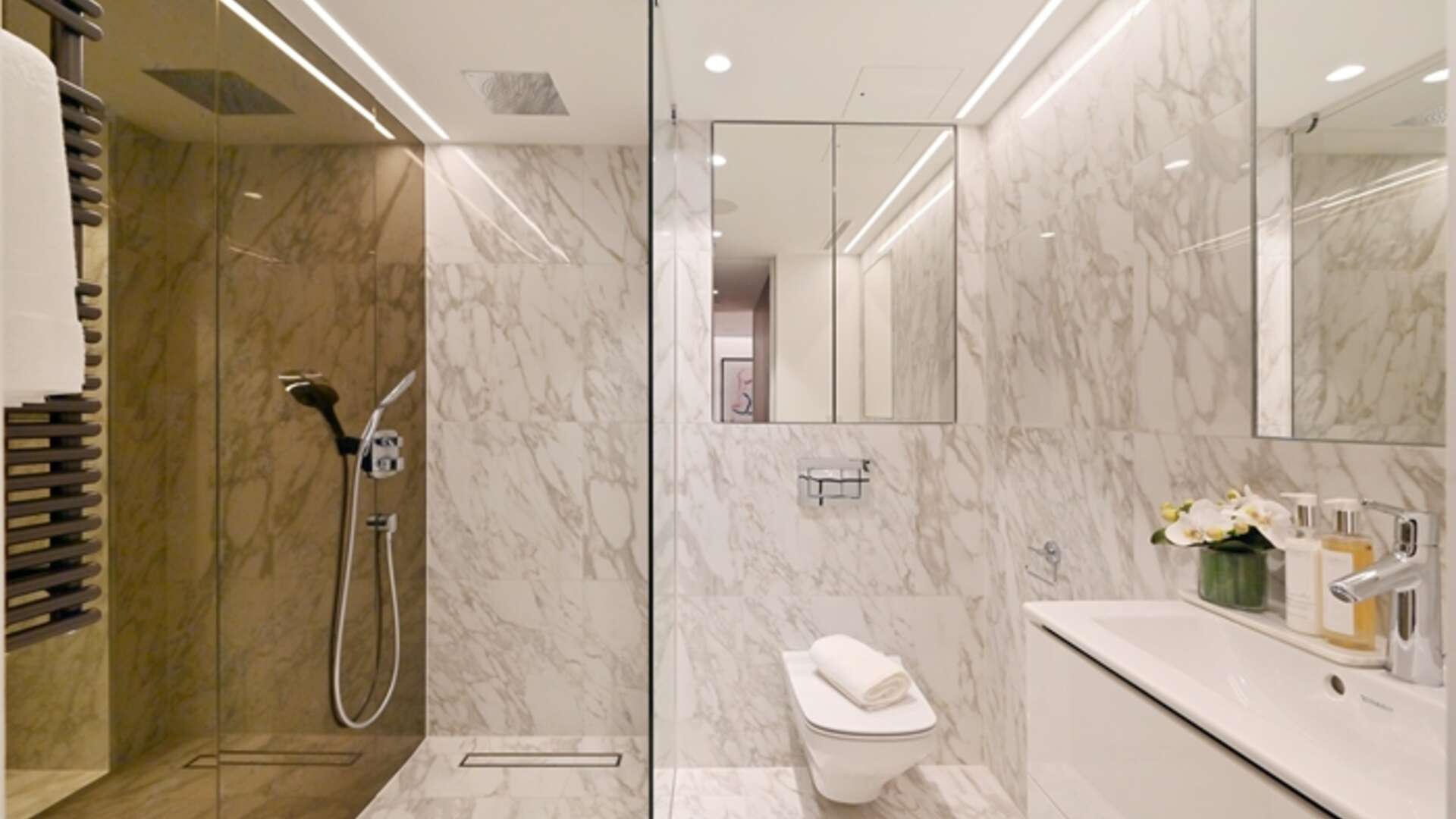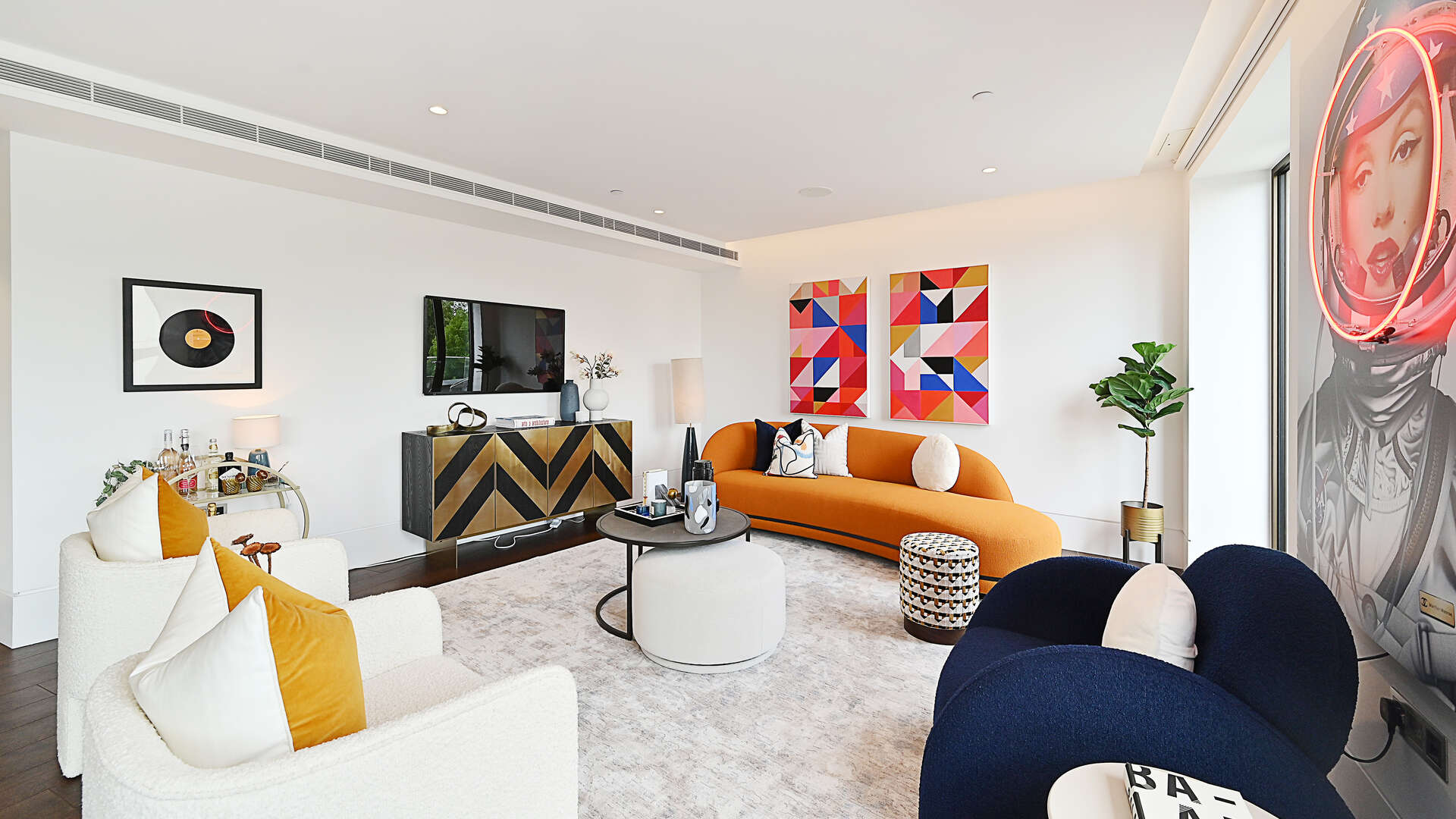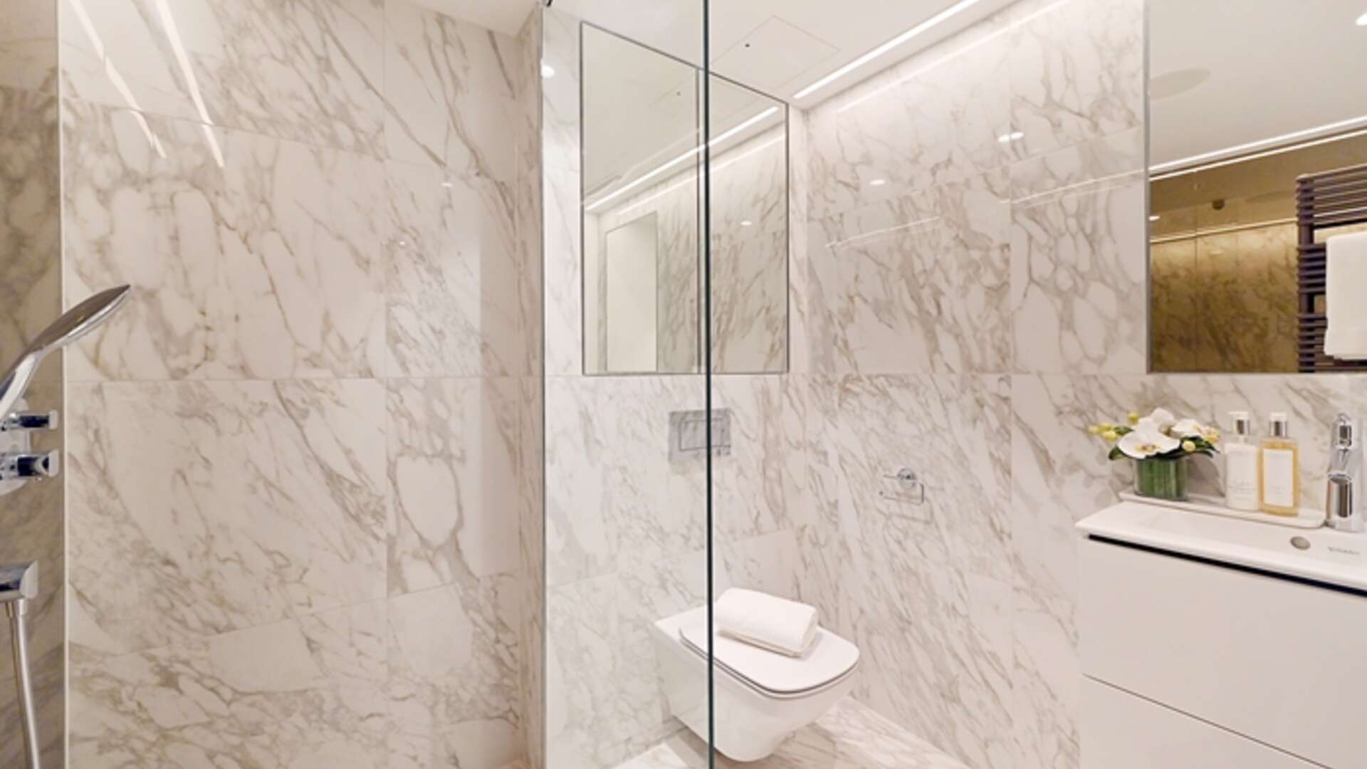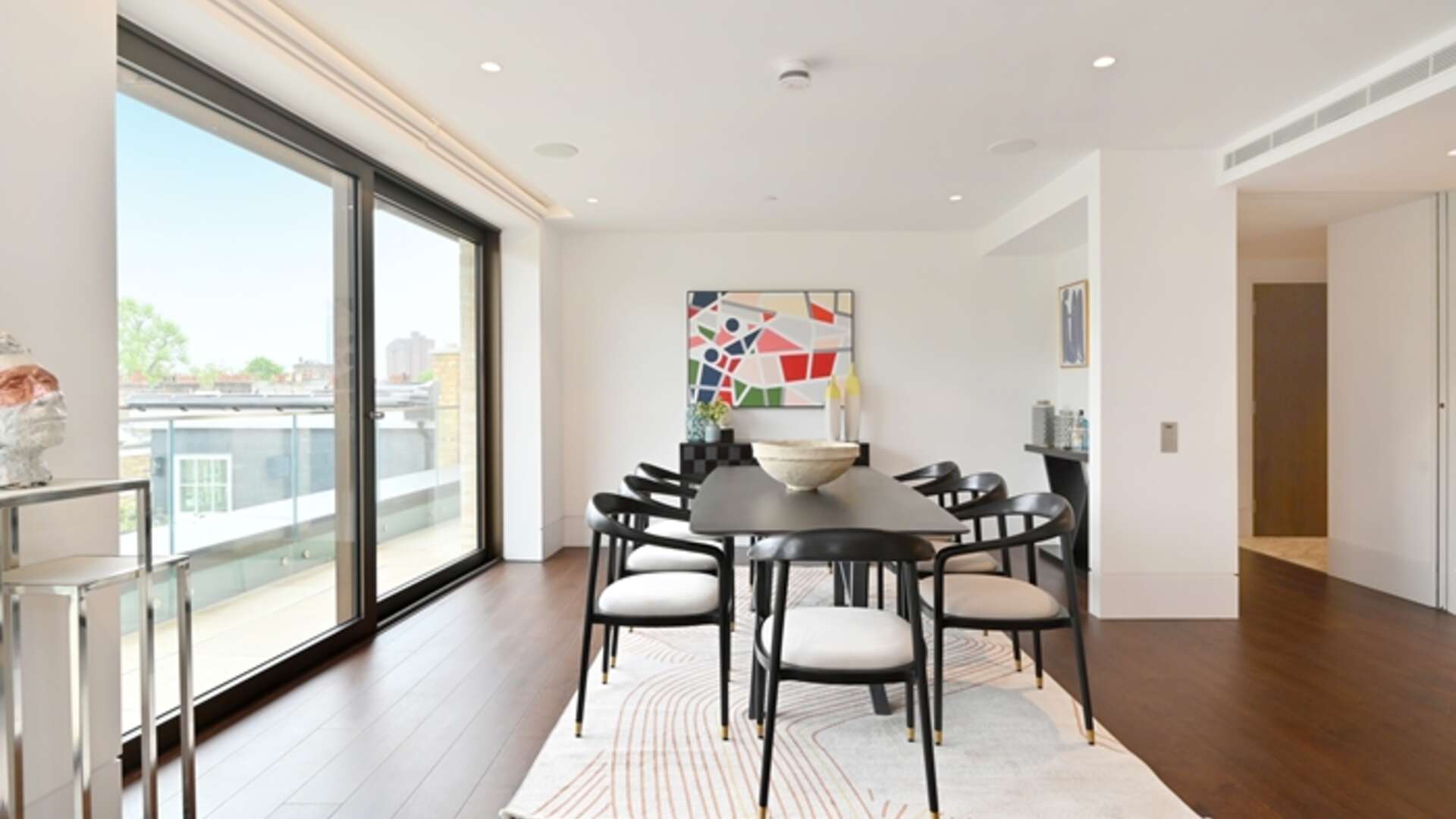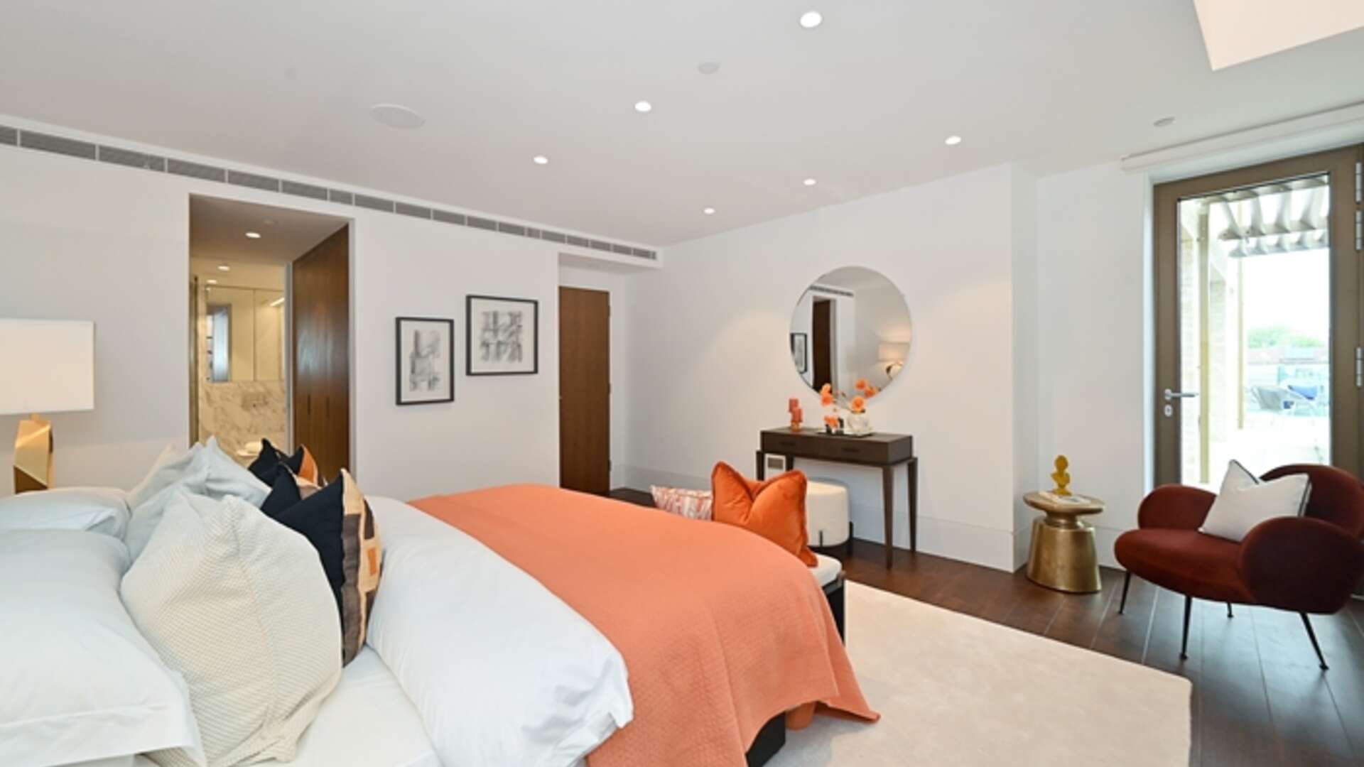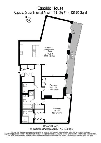 A stunning 2 bedroom second floor luxurious residence with a double reception room leading to a large south-facing terrace with glorious views over old Chelsea. The apartment offers incredible and generous entertaining space over 1,470 sq.ft. with superb reception/dining room, a state-of-the-art Porcelanosa open-plan kitchen with integrated Miele appliances and instant boiling water taps. The principal bedroom benefits from an en-suite dressing room and has its own shower suite with direct access to the private terrace. There is a second double bedroom with oak panel fitted wardrobes. In addition, there is a family bathroom, a guest cloakroom. The award-winning Essoldo House sits at the corner of old Church Street and the iconic Kings Road. All the apartments have been designed with high specifications including European oak wood flooring with under floor heating, air cooling system and Carrara marble in the kitchen and bathrooms.