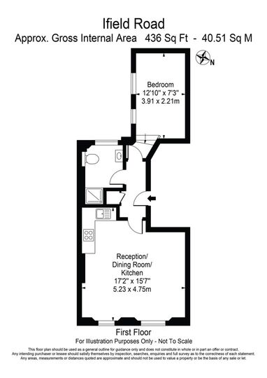 The bedroom is quietly situated at the rear of the building. 463 sq.ft.
